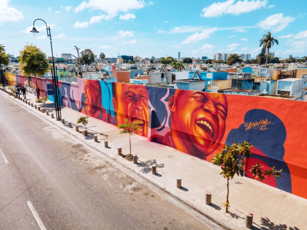 Realizado en alianza por la Alcaldía del Distrito, Pinturas Popular y la colaboración del gremio que agrupa a los muralistas Monumental RD, el festival contempla 14 murales que están plasmados en la fachada del Cementerio Nacional Máximo Gómez que da a la calle María Montez y un mural en la columna del peatonal Quinto Centenario ubicado en la estación Mauricio Báez, para un total de 15 exposiones elaboradas por 12 artistas nacionales y 3 internacionales que embellecen todo el entorno de e de este sector capitalino.