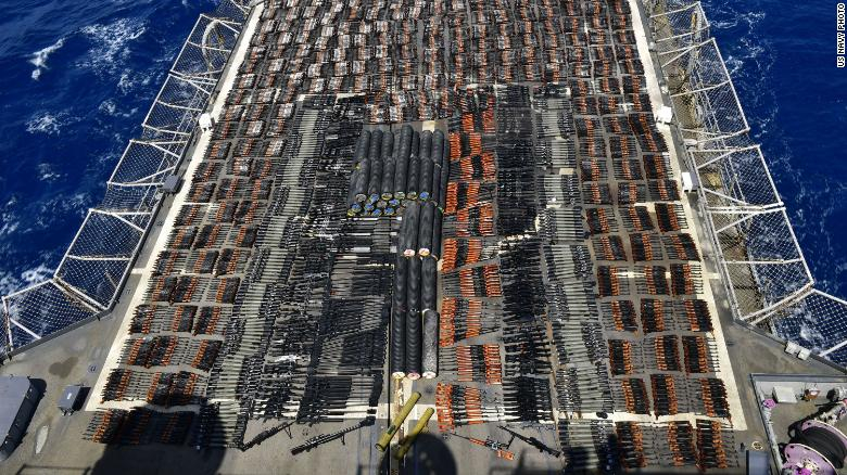 EE.UU. confiscó un cargamento de armas tan grande que llenó la cubierta trasera de un buque de guerra de 173 metros