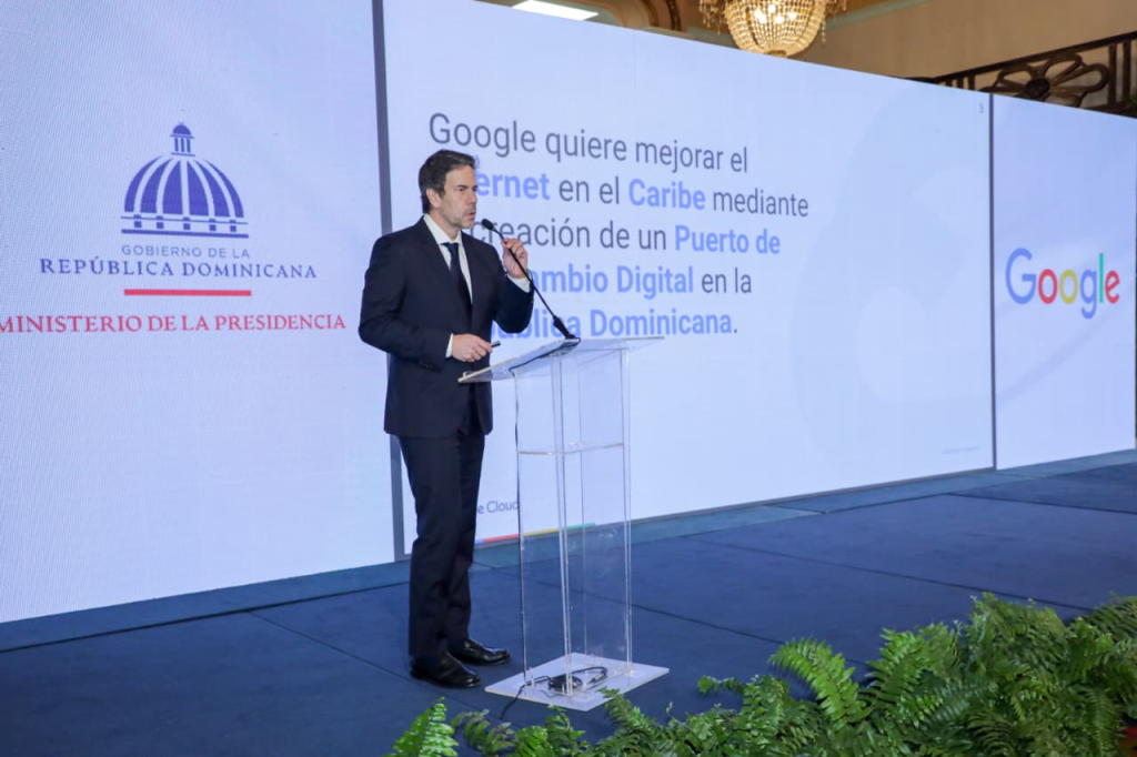 Durante la ceremonia, la empresa Google dijo que establecerá un Puerto de Intercambio Digital y en un anillo internacional de cable submarino que conectará la República Dominicana con Estados Unidos continental el primero de su tipo para el país representando un hito en la Estrategia Nacional de Inteligencia Artificial (ENIA) y en la iniciativa Meta RD 2036.