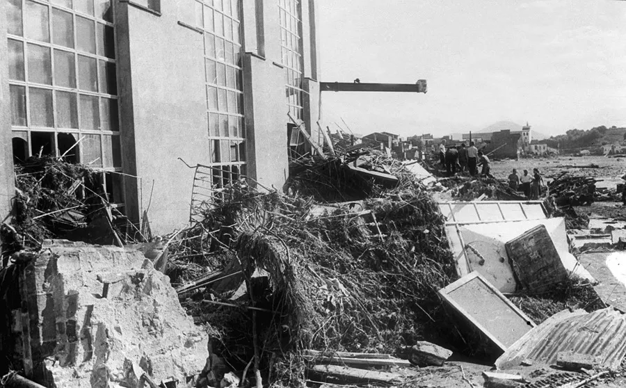 1962.- En la noche del 25 al 26 de septiembre de 1962 cayeron más de 200 litros por metro cuadrado en tres horas en la comarca catalana del Vallès Occidental, que causaron alrededor de 400 muertos, según cifras oficiales de la época. Actualmente se calcula que hubo al menos un millar, la mitad en Terrassa y Rubí, en la provincia de Barcelona. La ausencia de censo en la época impedía una contabilidad precisa.